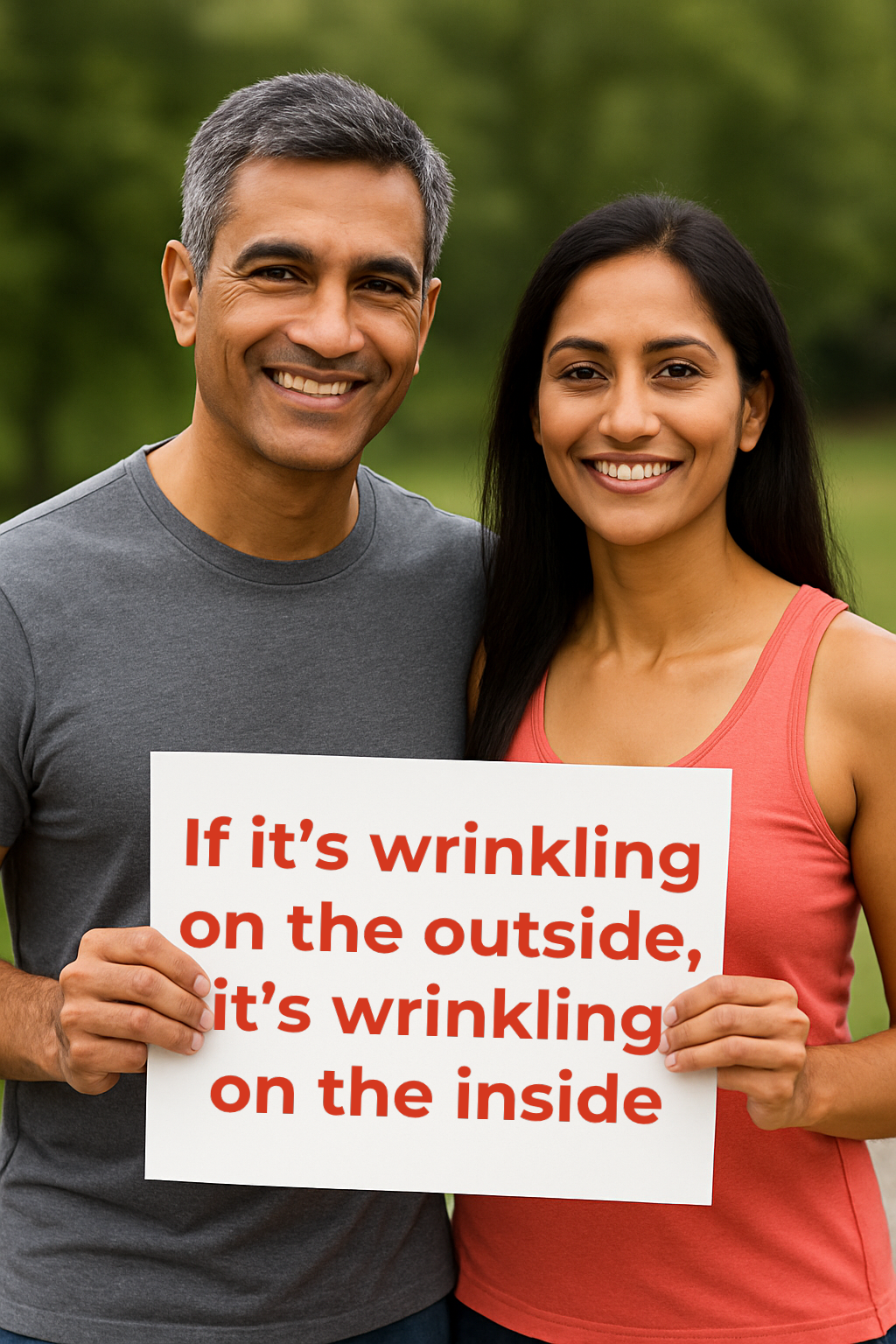 Collagen declines with age, leading to sagging, wrinkles, and systemic structural weakening—not only in the skin, but in joints, gut lining, blood vessels, and brain tissue. Every year after your 20s, collagen drops ~1%—impacting elasticity and resilience throughout.